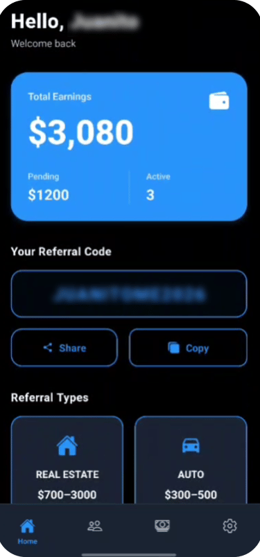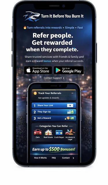Refer friends & family to trusted services like Cars, Real Estate, Credit Repair, Accident Help & more.
